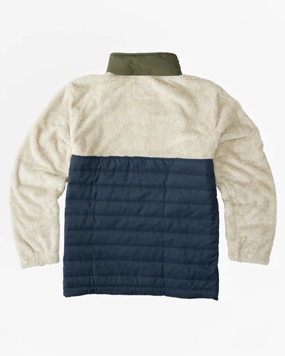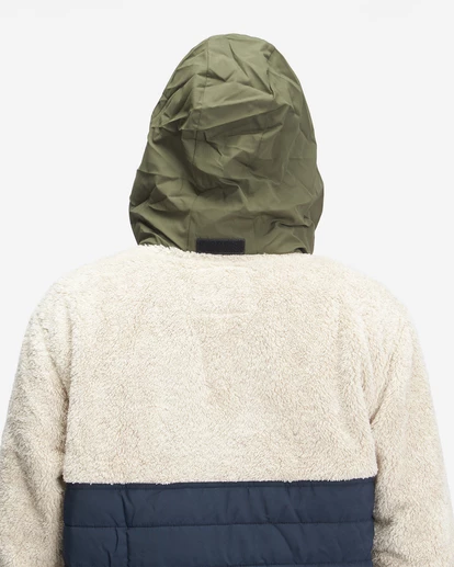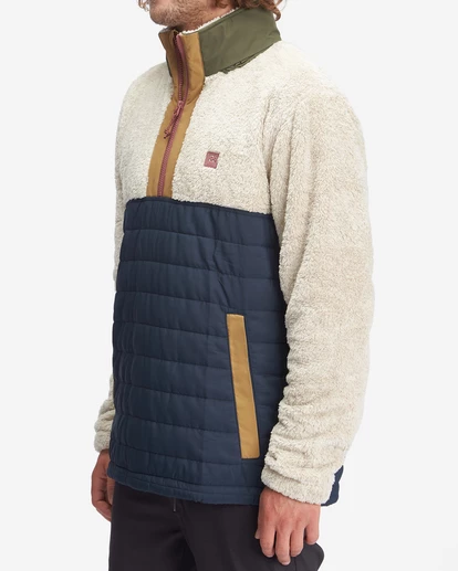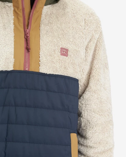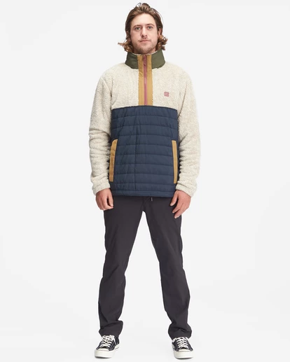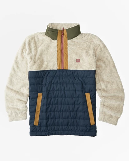 An adventure staple with innovative accents throughout, the Billabong A/Div Boundary Lite Offcut Half-Zip Pullover is made from recycled polyester with faux sherpa fabric at the upper body and sleeves, quilted nylon fabric at the lower body and a ripstop polyester hood for ultimate protection from the elements. Featuring a half-zip closure, long sleeves, elastic bungee cinch cord at the hem and elastic cuffs, this men’s pullover offers custom woven drawcords with shrink-wrapped tips and front hand welt pockets for all your needs. Topped with a matte rubber A/Div patch at the chest.