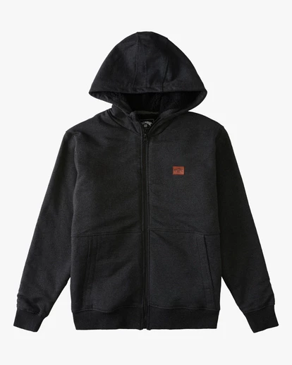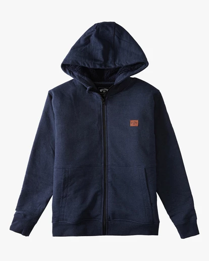 The Billabong Boys’ Hudson Sherpa Zip-Up Hoodie is made from cotton polyester blended fabric that’s been garment washed in softener for a super cozy feel throughout. This boys’ hoodie features a zip front closure, adjustable hood with sherpa lining for extra warmth, long sleeves, ribbed cuffs and hem and a split pouch pocket for all your needs. Topped with a diamond faux leather label at the chest.