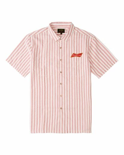 Looking straight off the racks of your favorite thrift store, the Budweiser Bow Stripe Short Sleeve Shirt is made from a woven organic cotton blend with mechanical stretch featuring yarn-dyed, vertical, vintage stripes. Part of our exclusive Billabong x Budweiser Collection, brought to you by two brands equally dedicated to good friends and great times, this short sleeve shirt is effortless in style and comfort, with a button front closure, straight hem, dual chest pockets for all your needs and a custom Budweiser collaboration patch at the chest. This collaboration comes through Billabong LAB, a division that supports artists, musicians, designers and photographers.