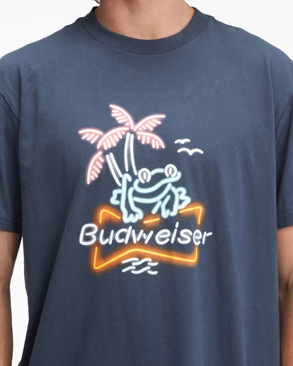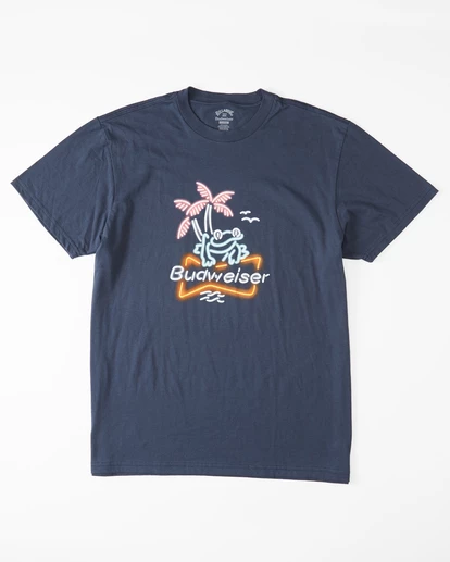 The Billabong Budweiser Frog Neon Short Sleeve T-Shirt features custom artwork at the chest in a nod to classic barroom neon signs. Made from premium organic cotton for a super soft feel, this men’s short sleeve t-shirt is part of our exclusive Billabong x Budweiser Collection, bringing together two brands equally dedicated to good friends and great times. Featuring short sleeves and a crew neck for clean lines all around, this lightweight tee is finished off with a heat-seal neck label and side seam flag label for a comfortable fit. This exclusive brand collaboration comes through Billabong LAB, a division supporting artists, musicians, designers and photographers.