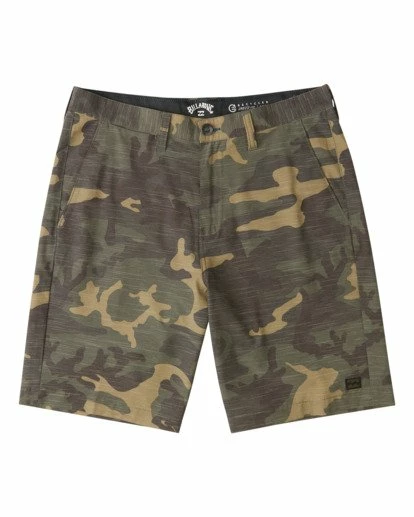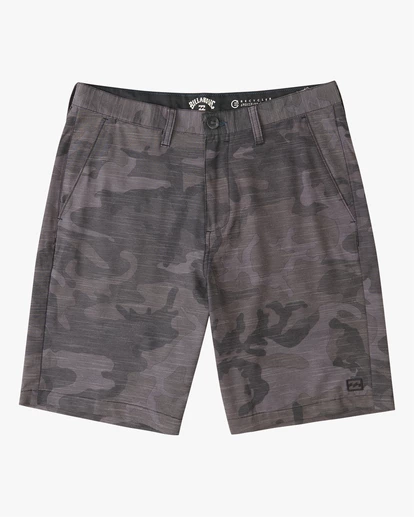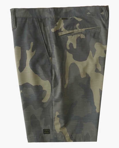 Take on any adventure in the Billabong Crossfire Slub Camo Submersible Short 21", made from 4-way stretch recycled fabric in an allover camo print with slub texture and water repellent coating for a lightweight and quick drying feel. These fully submersible walkshorts feature a chino styling with a zipper at the back right pocket for all your needs. Crossfire internal jacquard waistband adds comfort throughout, and our signature wave logo at the bottom left leg hem adds vibes for days.