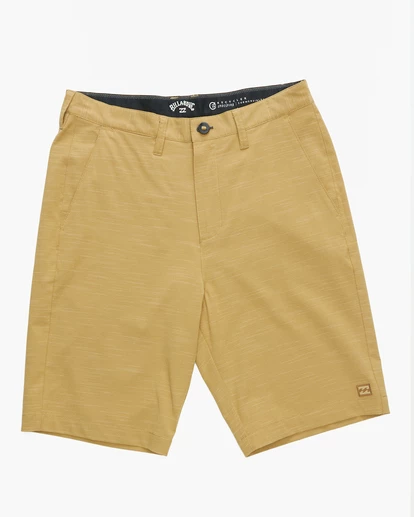 The fully submersible Billabong Crossfire Slub Walkshort is made from 4-way stretch fabric with slub texture that’s been coated in water repellent for a lightweight , quick drying feel that never weighs you down. Featuring chino styling with a zipper at the back right pocket, crossfire internal jacquard waistband for comfort, and our signature wave label on the bottom leg hem for street cred.