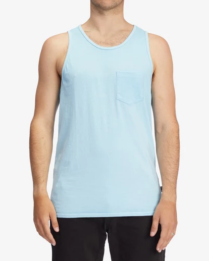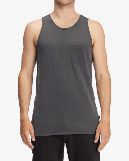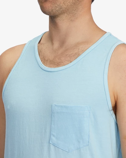 Skip the farmer’s tan in the Billabong Essential Wave Washed Pocket Tank, made from premium combed ring spun cotton jersey washed in an overdyed treatment for a faded, worn-in feel. This men’s pocket tank top features a crewneck collar, heat seal neck label and side seam flag label for a classic look.