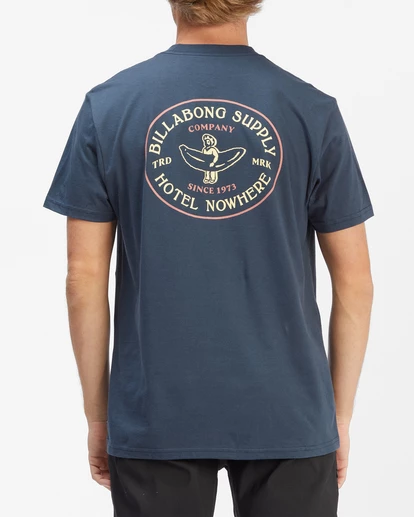 The Billabong Hotel Nowhere Short Sleeve T-Shirt combines effortless comfort and heritage style into one. Made from premium combed ring spun jersey, this lightweight t-shirt features a crewneck collar, short sleeves, heat seal neck label and side seam flag label for an easy fit. Topped with screen prints at the chest and back in soft-hand ink.