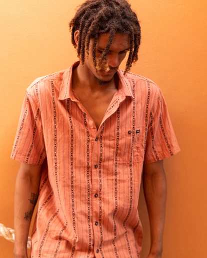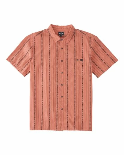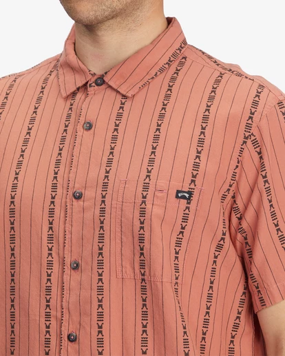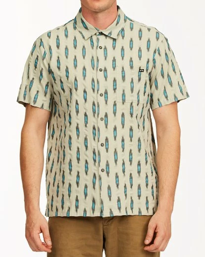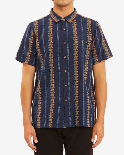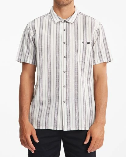 Look fly without the fuss in the Billabong Men’s Sundays Jacquard Short Sleeve Shirt, a button down collared shirt with pocket at the chest. Made from a woven cotton blend, this top features an all over print design that’s right for any occasion.