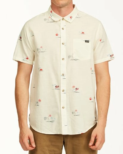 Looking buttoned-up takes on low key distinction with the Sundays July short sleeve woven shirt. An all-over mini mark print makes a modern statement of distinct style. A chest pocket and a button-down collar are the classic characteristics that will make this men’s shirt an all-time favorite. Designed in a mechanical stretch slub fabric.