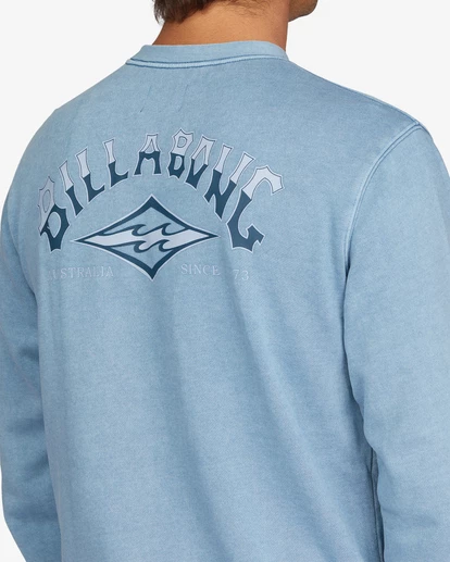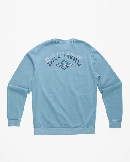 The Billabong Wave Washed Theme Arch Crewneck Pullover offers comfort, heritage graphics and effortless style in one. This men’s sweatshirt is made from super soft, garment washed cotton polyester tossed in a stone deposit treatment for a faded, throwback inspired look. Featuring a crewneck collar, long sleeves with ribbed cuffs, a ribbed hem and Billabong logo screen prints at the chest and back.