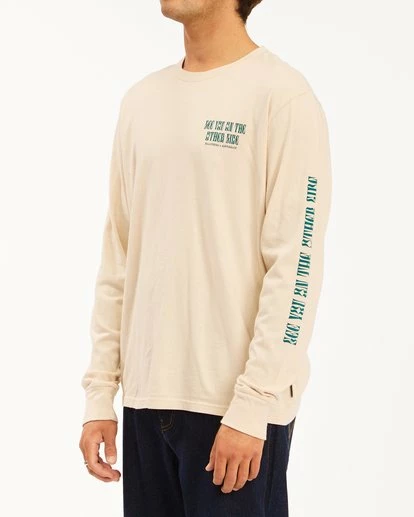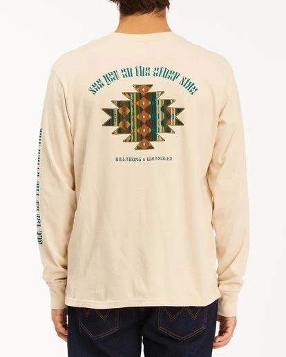 Infused with surf heritage and modern design, the Billabong Westward Long Sleeve T-Shirt features custom artwork prints at the chest, sleeves and back for a bold, timeless look. Part of our exclusive Billabong x Wrangler Collection, this men’s long sleeve t-shirt is made from premium organic cotton overdyed in a heavy enzyme wash for a vintage, wave-tossed feel. Built with a crew neck and long sleeves, this closet staple is finished off with a heat seal neck label and side seam flag label for an effortless fit throughout.
